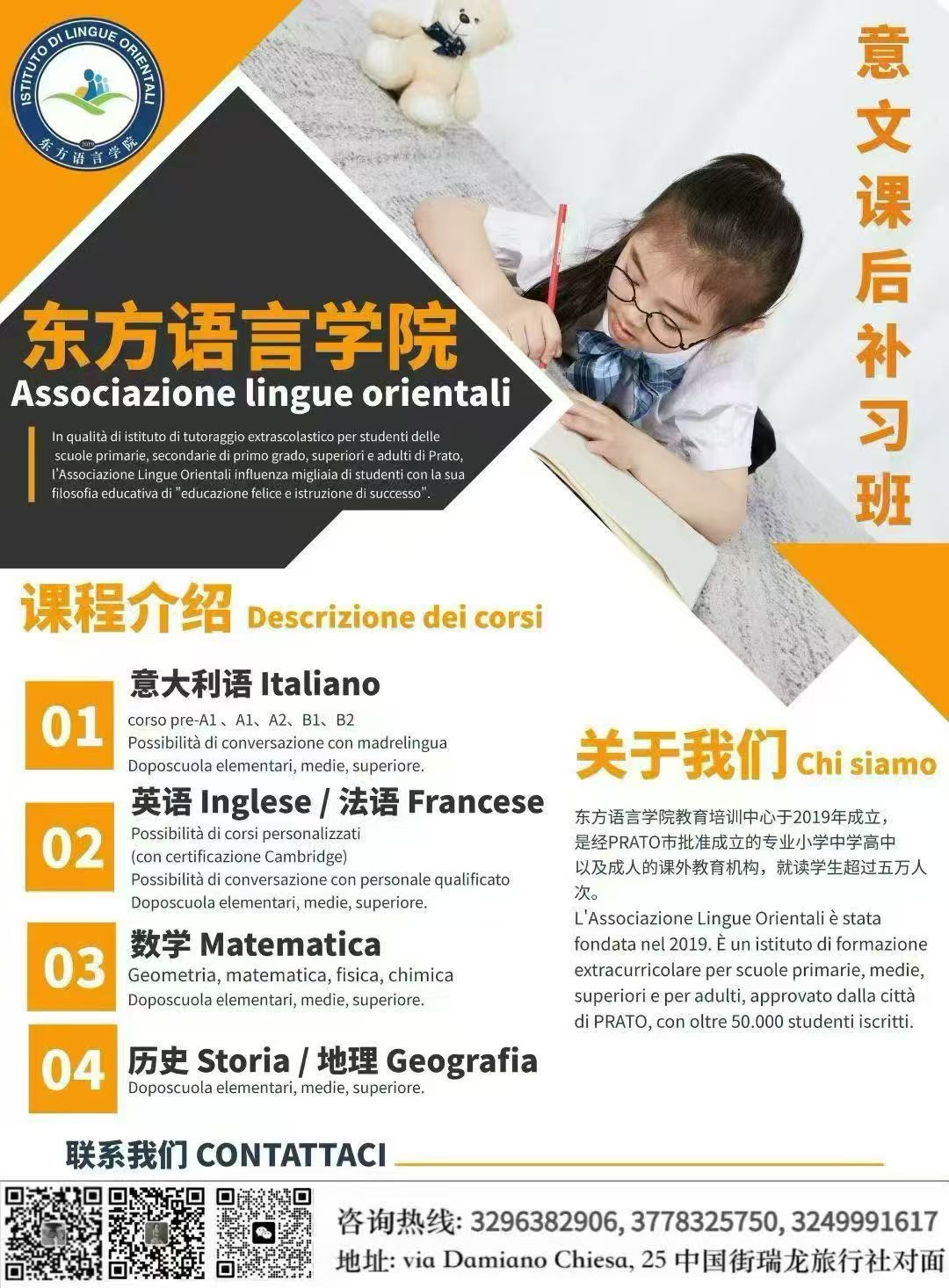 【东方语言学院】新学期课后补习班开始约课啦!专业大学教师,可补习意大利文、地理、历史、数学等课程!还开设意大利文、英文等小组课堂,可约 1对1 辅导,快速提高听力水平,提升口语表达能力!名额有限,快速报名哦[爱心][爱心][爱心]3778325750 3296382906 3249991617