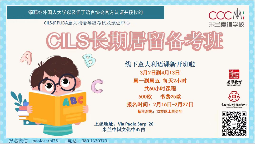 8 h1 }% }3 l5 F' N' b' n+ A: V📢 听说读专项突破 课程时间:3月2日-4月13日 周一至周五 每天2小时 微信报名:cccmiscuola 电话报名:3801370370 |